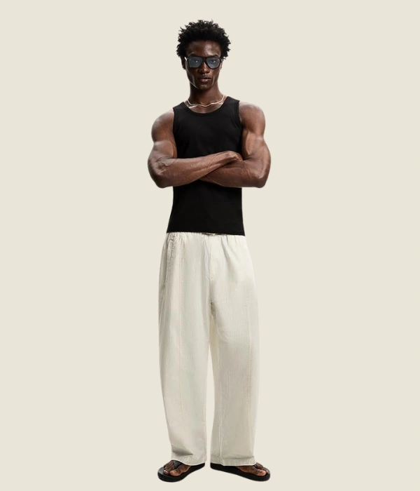 You can pair it with a plain t-shirt or hoodie for a casual outfit. Add sneakers for a streetwear vibe or layer it with a jacket for cooler days. The subtle stripes add character without overpowering your look.